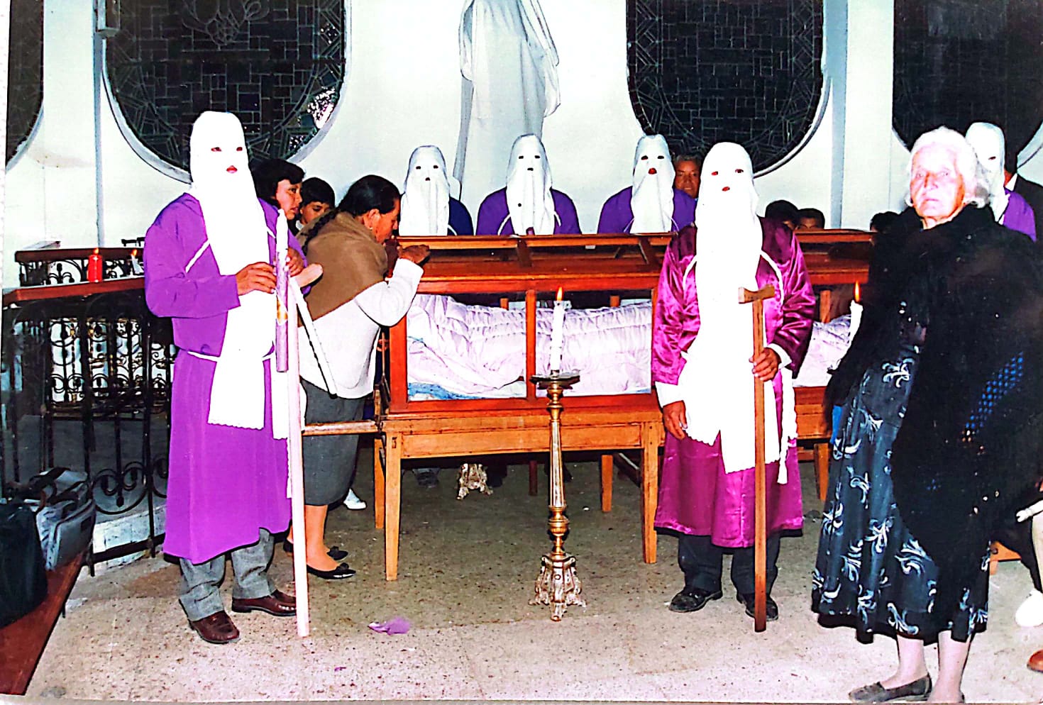 Con nostalgia nos describe un secreto: “cuando muere un cucurucho se le entierra puesto la vestimenta como signo de haber servido a Dios”